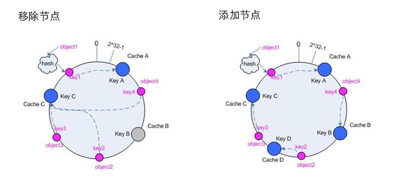- 优点:新节点加入,或旧节点退出时,只影响紧相邻的下一个节点